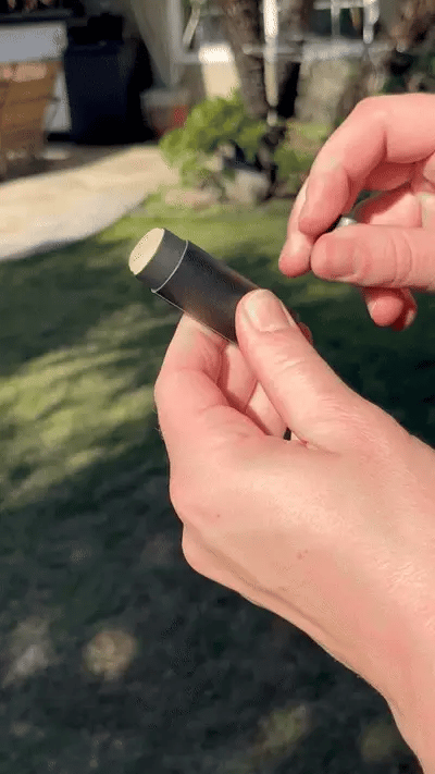 Push-up paper lip balm tube with product visible, 1-ounce, plastic-free, compostable, sustainable personal care
